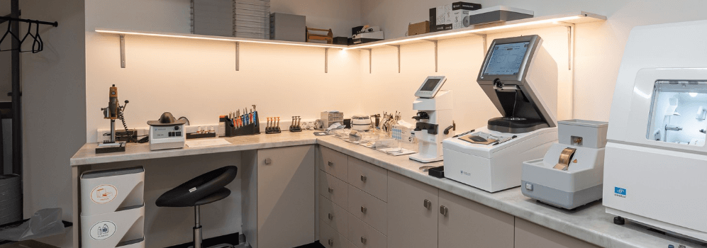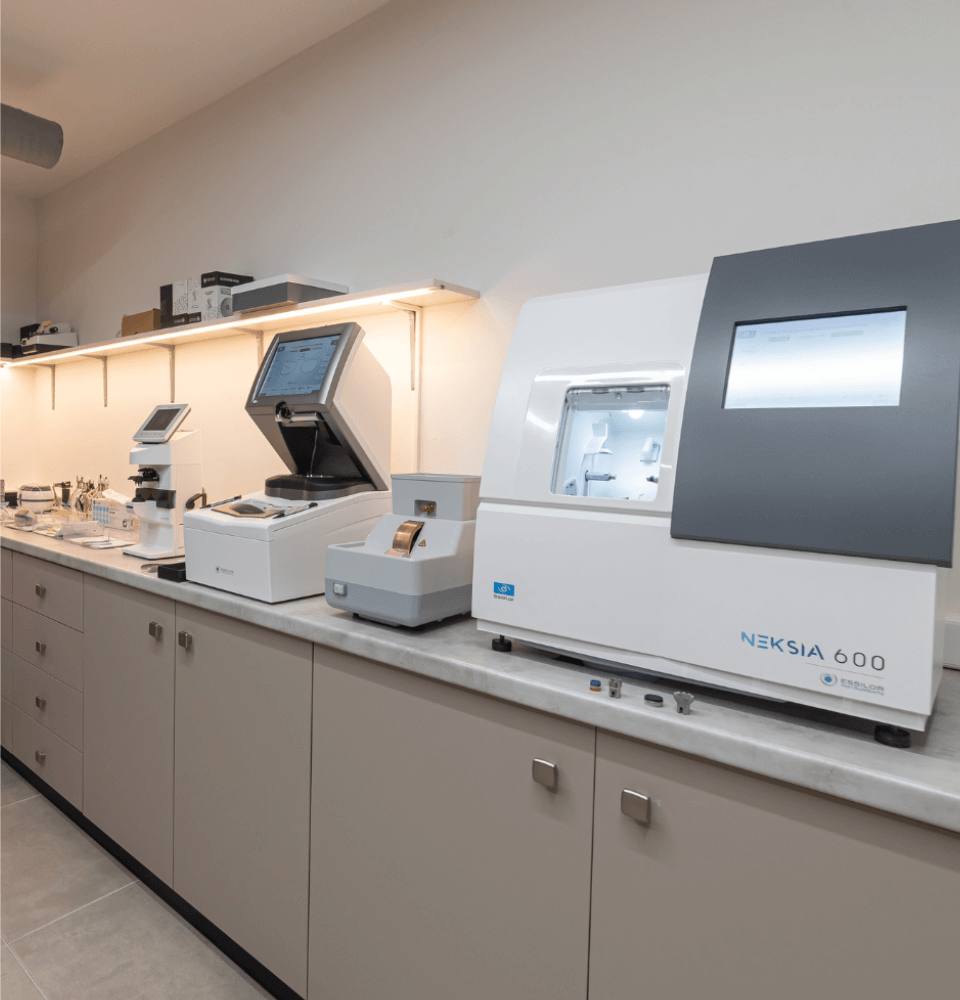 Το εργαστήριο της Optical Factory είναι η «καρδιά» της επιχείρησής μας, όπου η τεχνογνωσία συναντά την υψηλή ποιότητα. Με ιδιόκτητο εργαστήριο οπτικών και εξειδικευμένους τεχνικούς, έχουμε τη δυνατότητα να κατασκευάζουμε και να προσαρμόζουμε τα γυαλιά σας με μοναδική ακρίβεια και συνέπεια. Χάρη στον σύγχρονο εξοπλισμό και τις αυστηρές διαδικασίες ελέγχου, μπορούμε να εγγυηθούμε άριστη εφαρμογή, βέλτιστη οπτική απόδοση και κορυφαία αισθητική στο τελικό αποτέλεσμα.